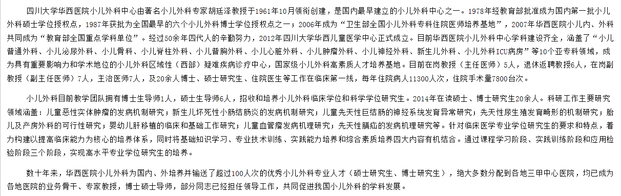 2020年四川大学华西临床医学院外科学(小儿外科)考研学科介绍