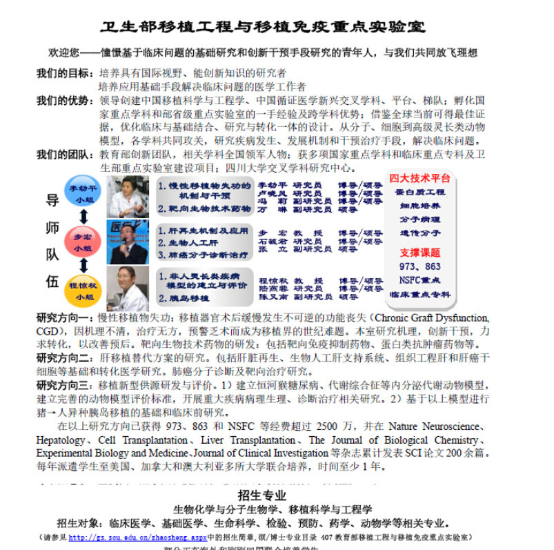 2020年四川大学华西临床医学院医学移植科学与工程学考研学科介绍