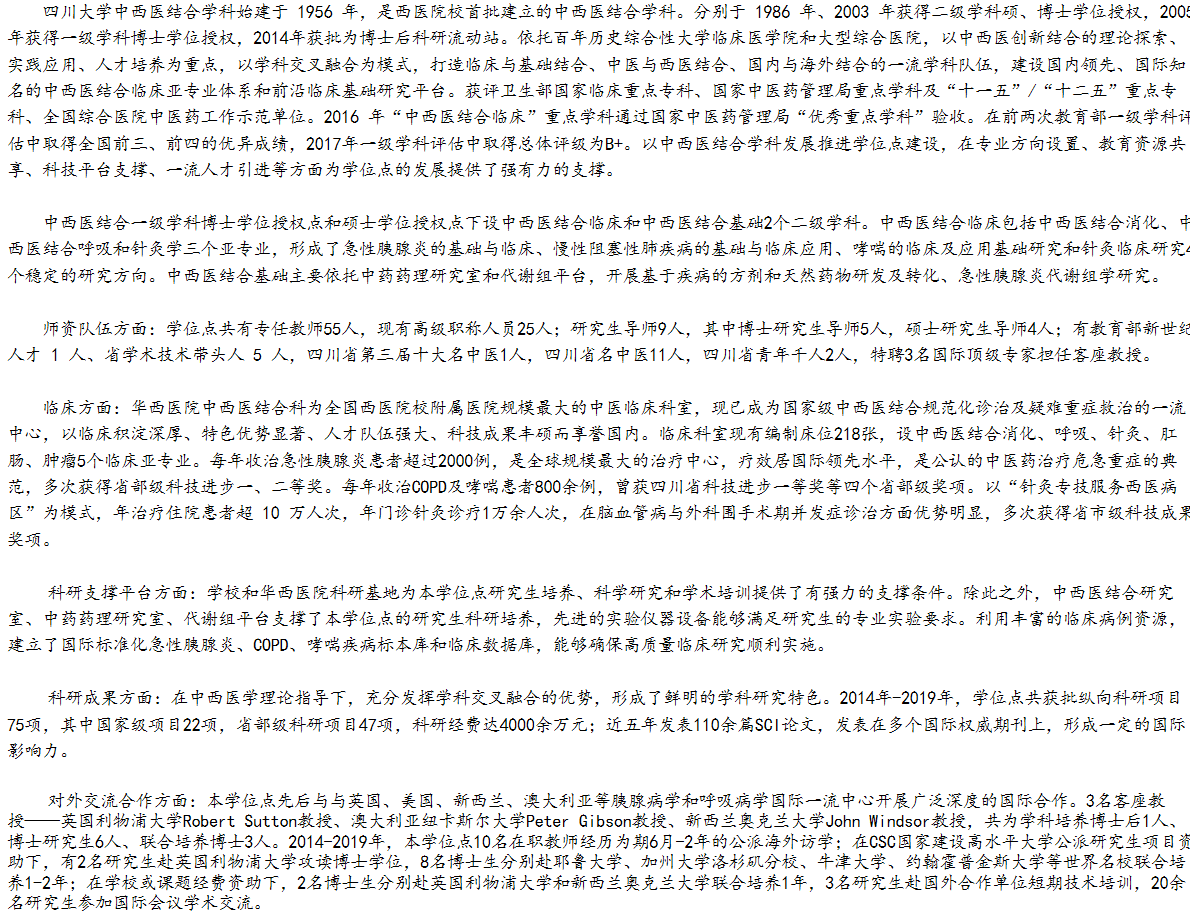 2020年四川大学华西临床医学院中西医结合考研学科介绍