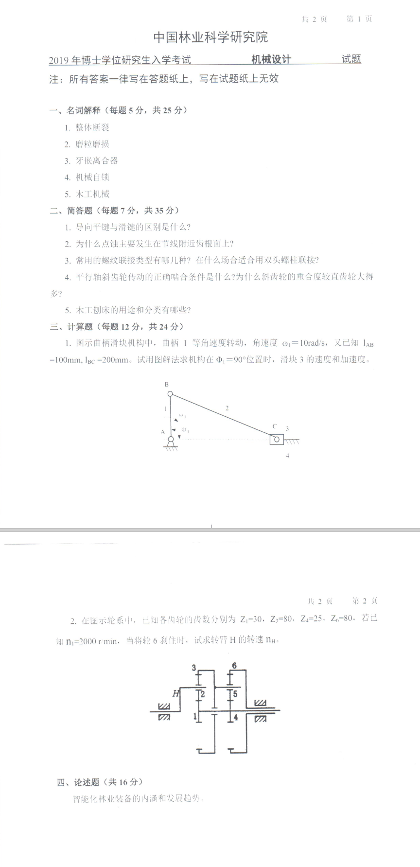 林科院考博辅导班:2019年中国林业科学研究院博士研究生入学考试3014机械设计考试真题