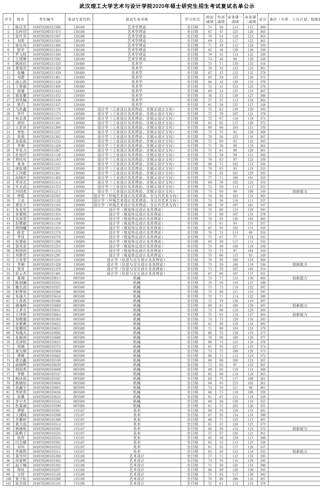 武汉理工大学考研辅导班:武汉理工大学艺术与设计学院2020年硕士研究生招生考试复试名单公示
