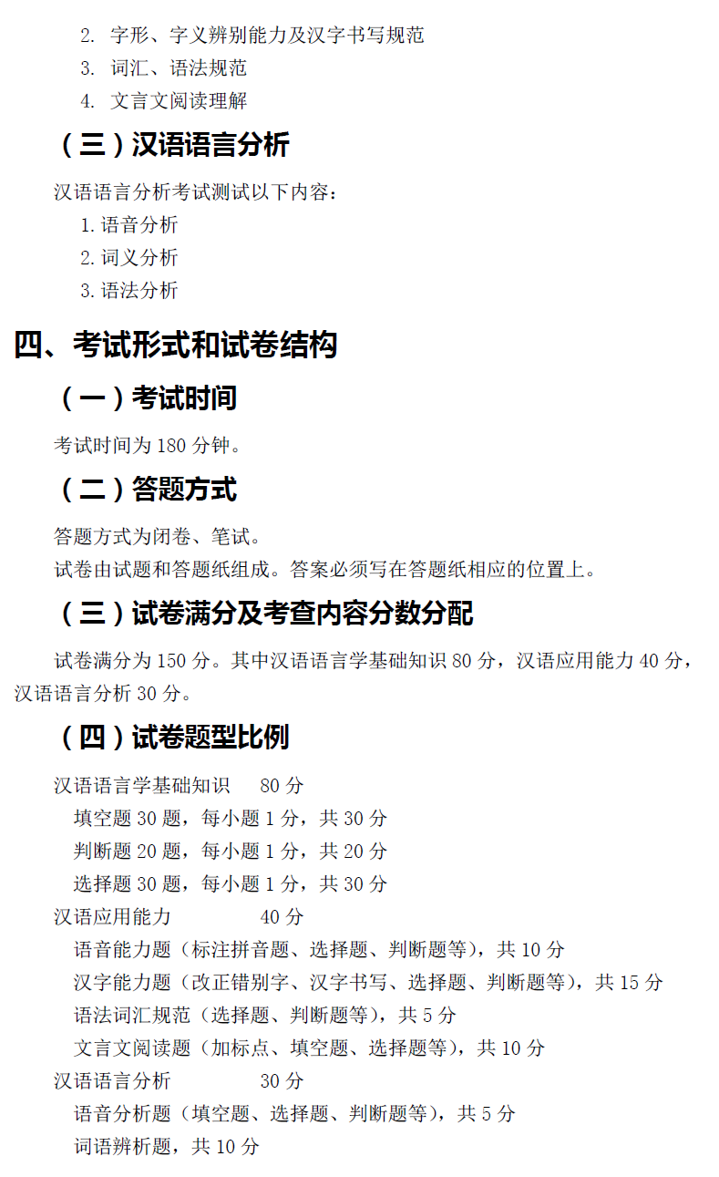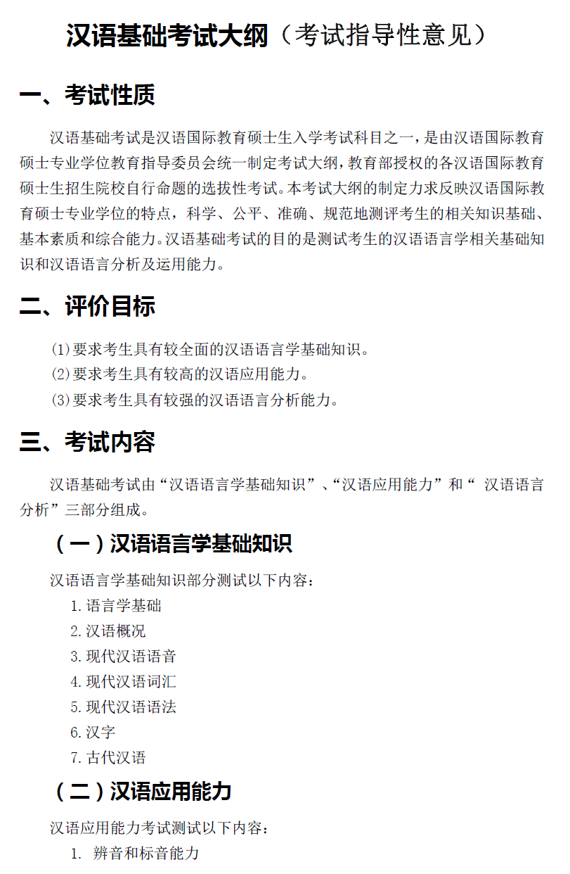 北京第二外国语学院考研辅导班:北二外汉语语言学基础考试大纲