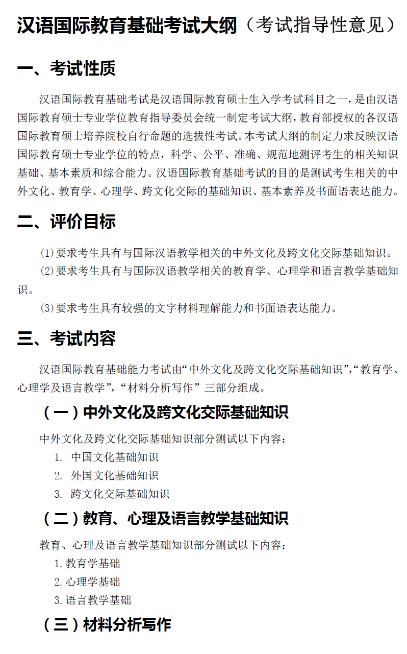 北京第二外国语学院考研辅导班:汉语国际教育基础考试大纲