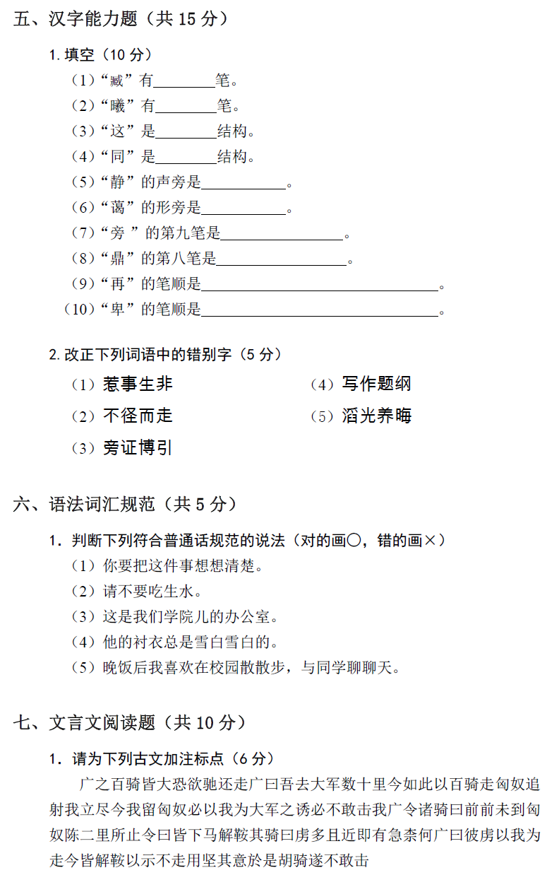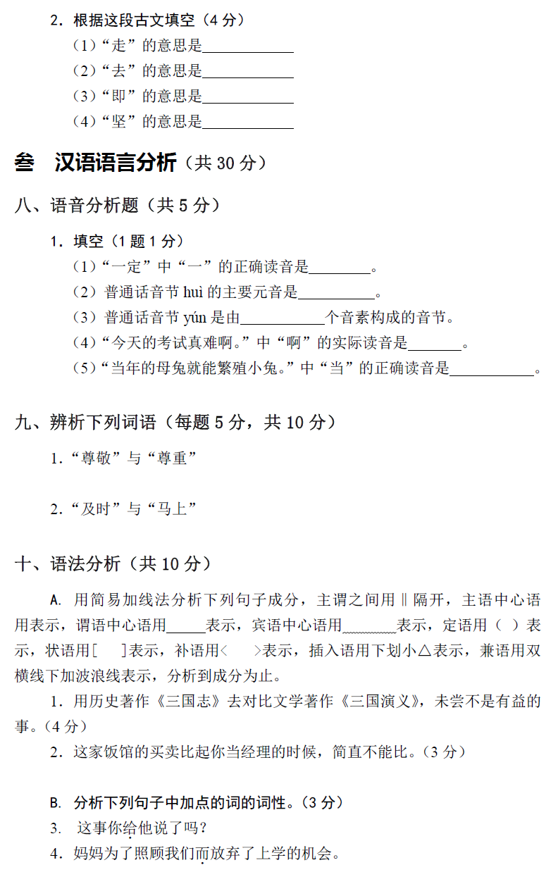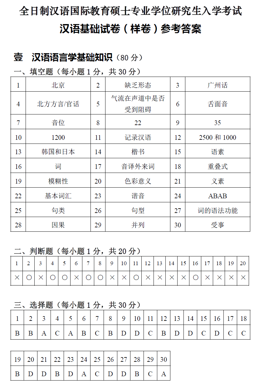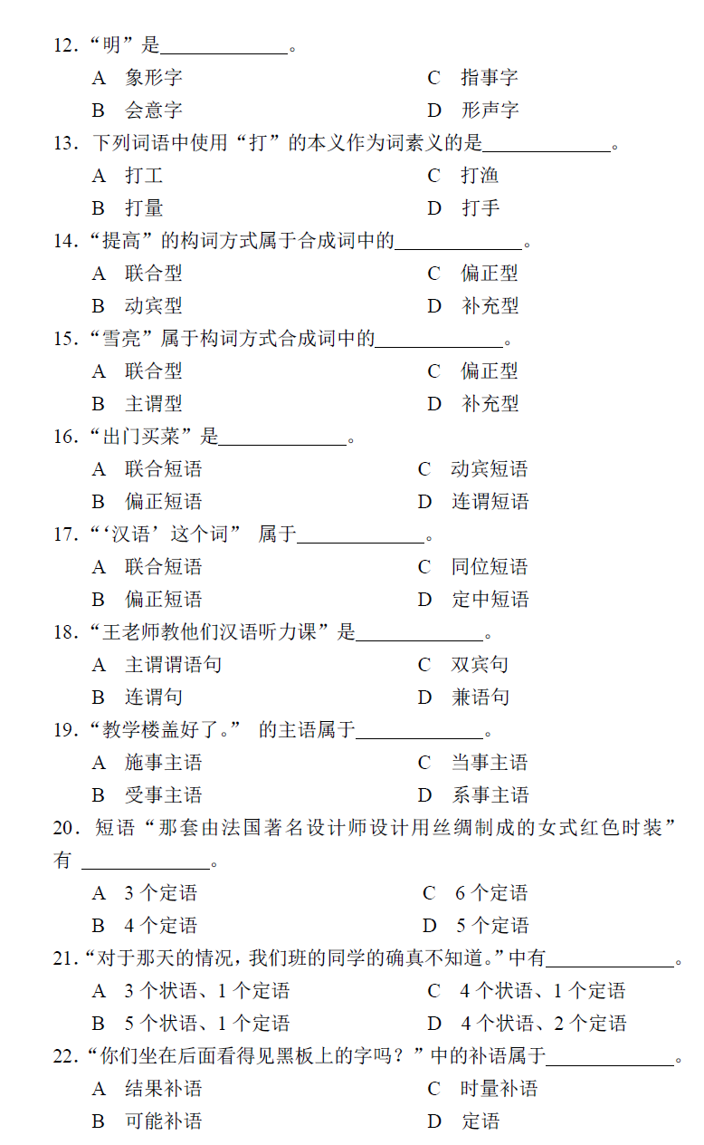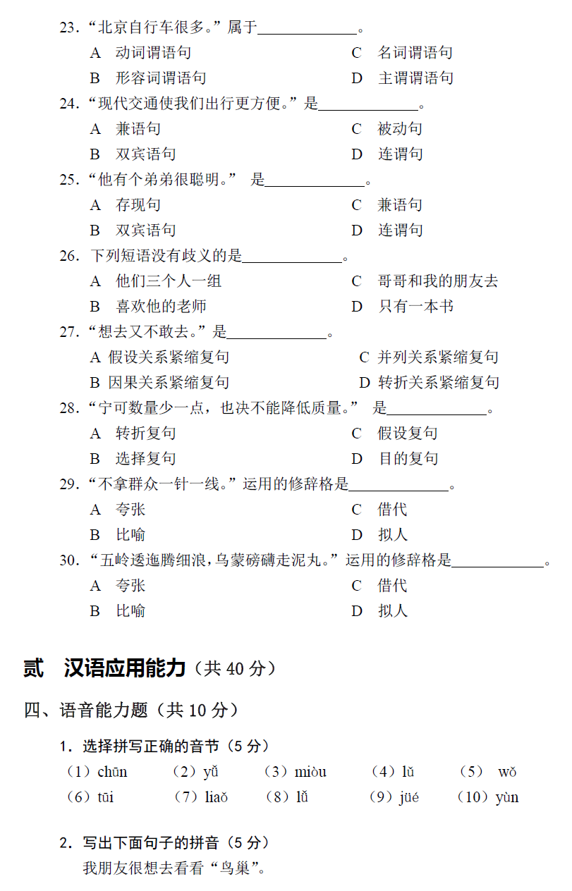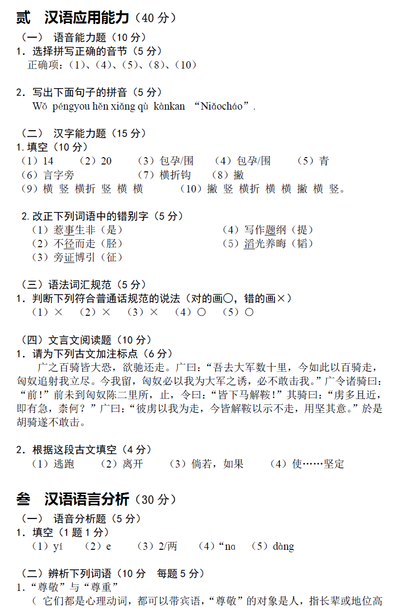 北京第二外国语学院考研辅导班:北二外全日制汉语国际教育硕士专业学位研究生入学考试汉语基础综合考试试卷(样卷)