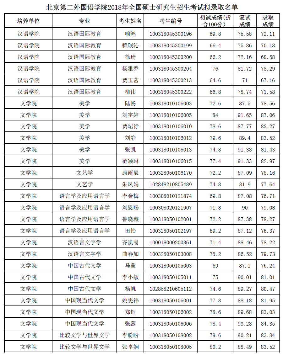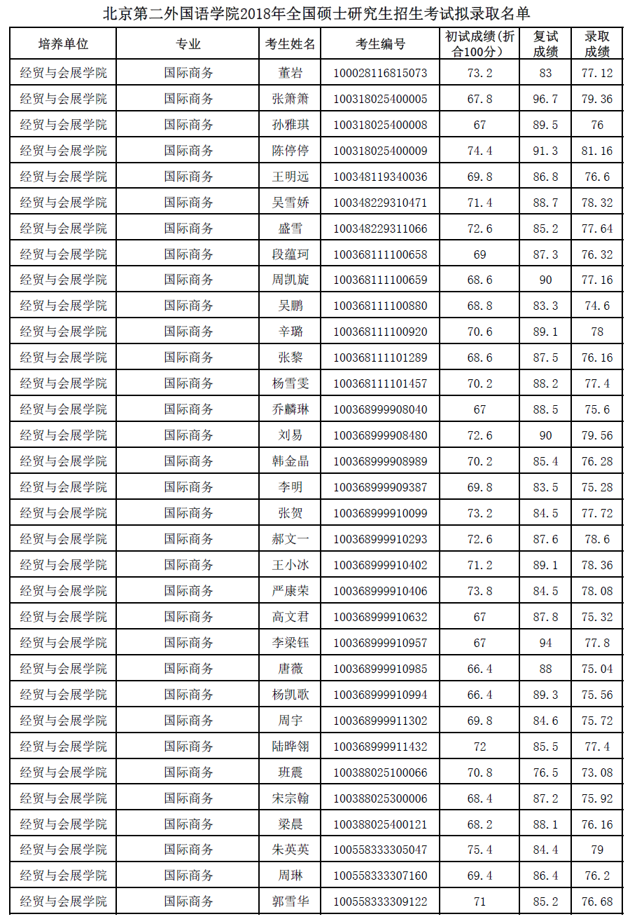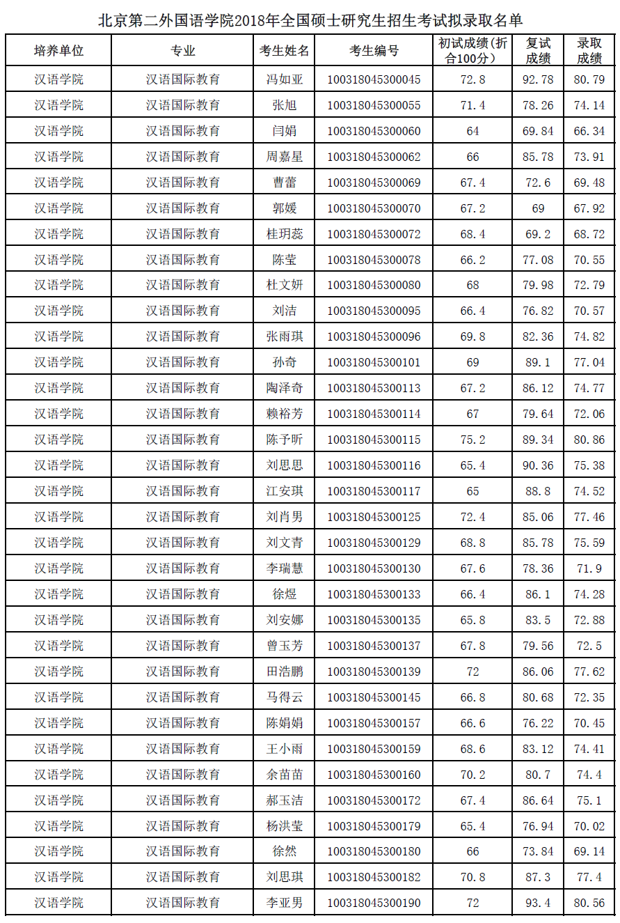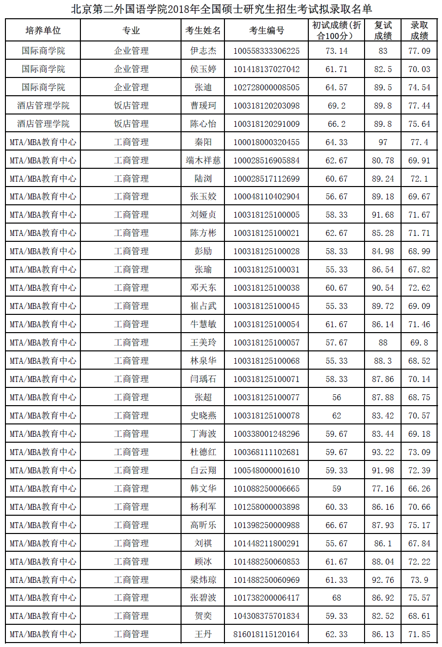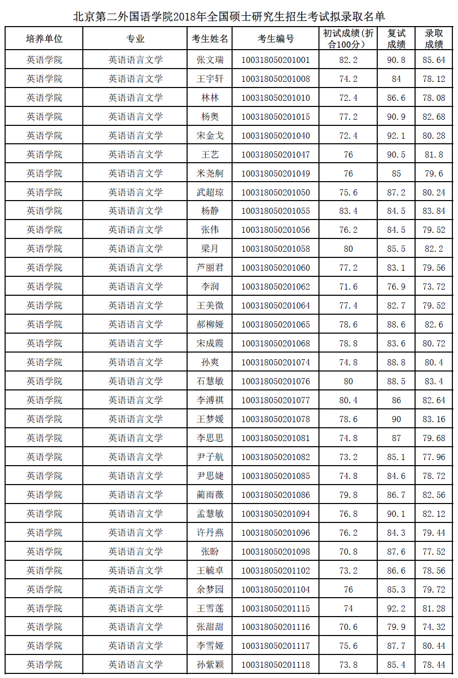 北京第二外国语学院考研辅导班:北京第二外国语学院2018年全国硕士研究生招生考试拟录取名单