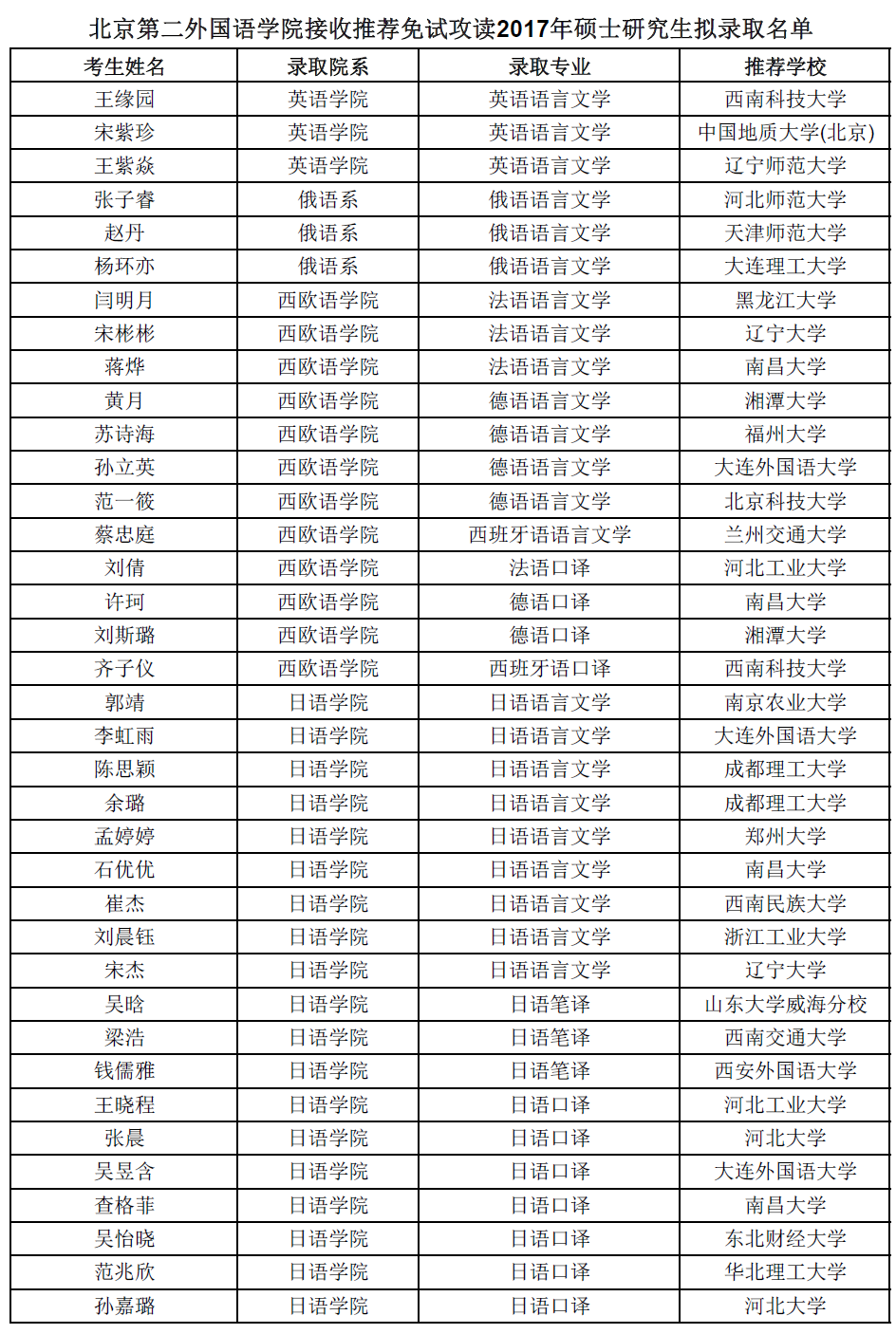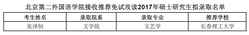 北京第二外国语学院考研辅导班:北京第二外国语学院接收推荐免试攻读2017年硕士研究生拟录取名单