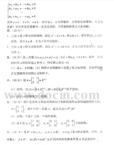 2020-2021年武汉理工考研辅导班:武汉理工大学817高等代数2004年考研真题