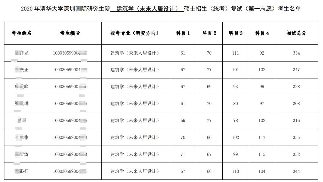 清华大学考研辅导班:2020年清华大学深圳国际研究生院建筑学(未来人居设计)硕士招生考研复试一志愿考生名单