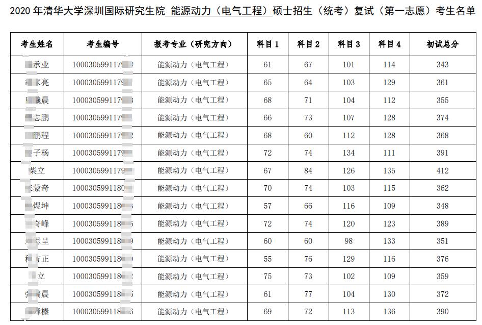 清华大学考研辅导班:2020年清华大学深圳国际研究生院能源动力(电气工程)硕士生考研复试一志愿考生名单
