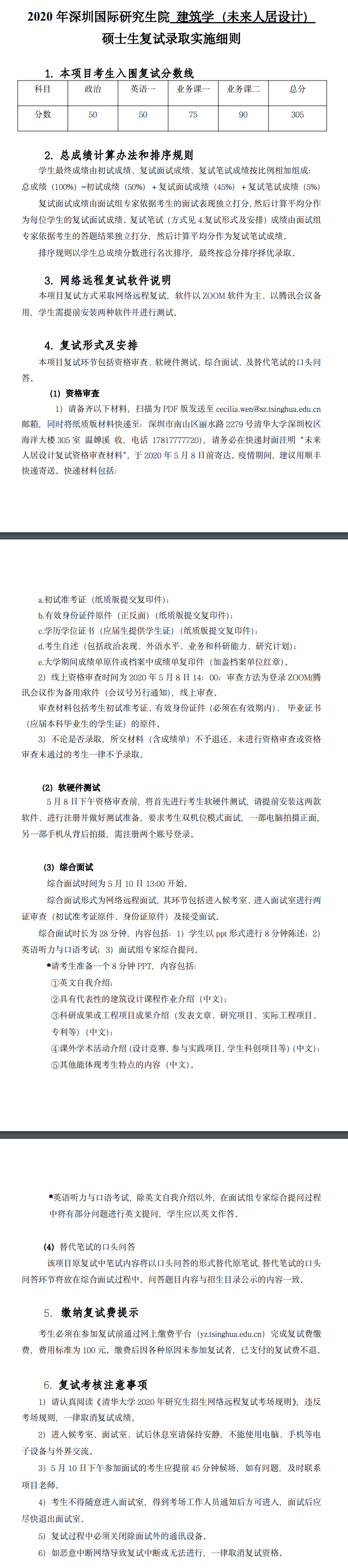 清华大学考研辅导班:2020年清华大学深圳国际研究生院建筑学(未来人居设计)硕士生考研复试招生名额及安排细则