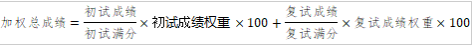 复试结束后,各学院将汇总考生各科目复试成绩,并按照学校规定在各学院网站公示。加权总成绩计算方式:
