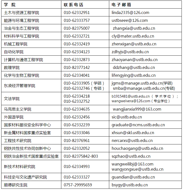 七、各培养单位研究生招生办公室联系电话
