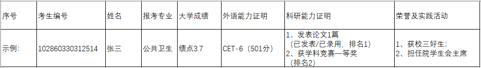 注:以上材料将作为对考生既往学业、一贯表现、科研能力、综合素质和思想品德等情况全面考查的参考依据;考生必须保证材料真实准确,若弄虚作假,一经发现,立即取消其复试或录取资格。