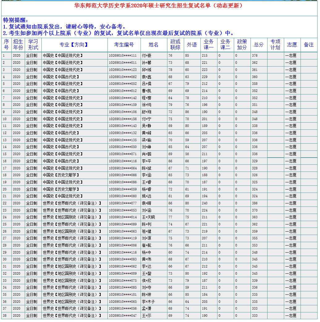 华东师范考研辅导班:2020年华东师范大学历史学系研究生考研复试名单