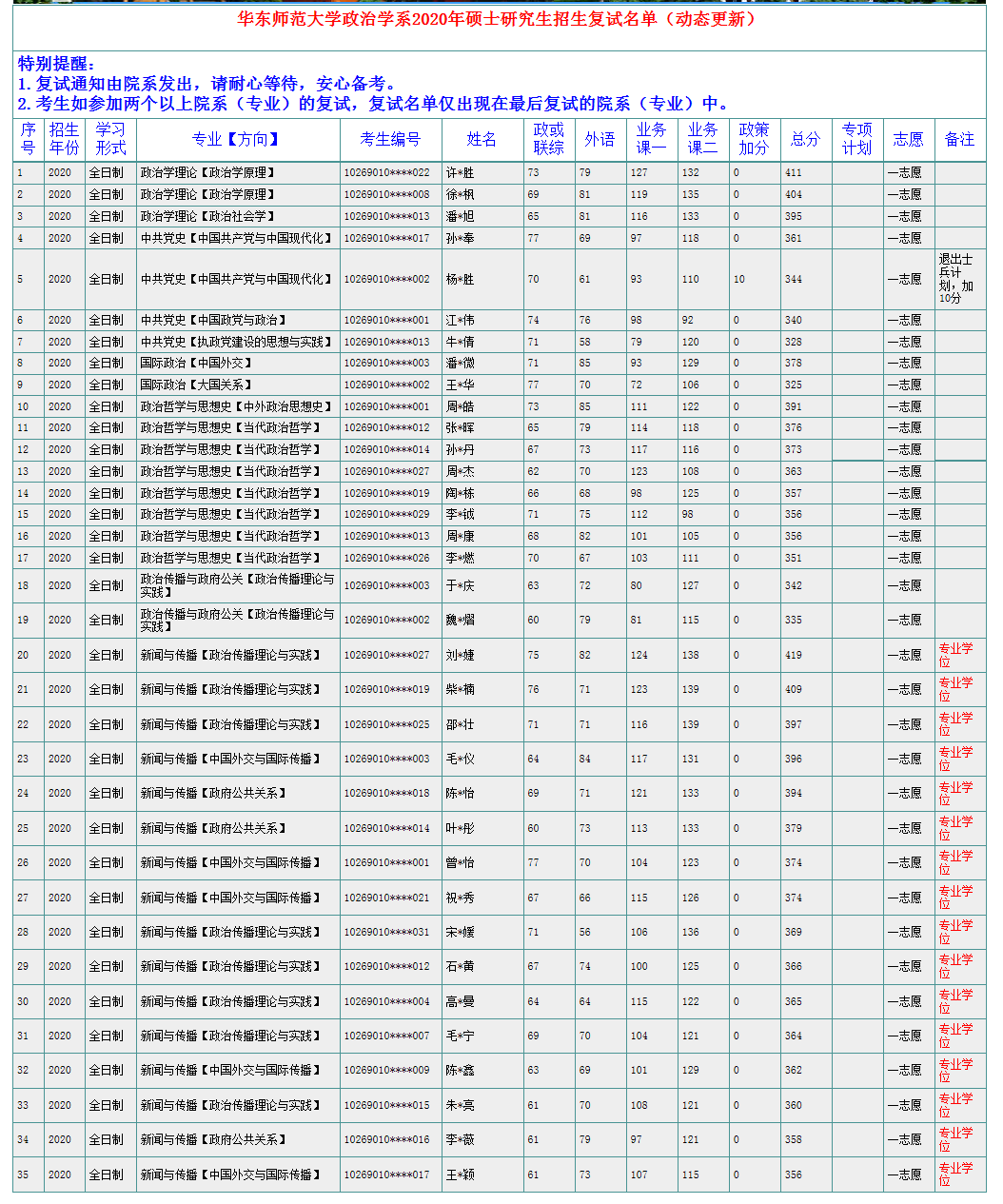 华东师范考研辅导班:2020年华东师范大学政治学系研究生考研复试名单