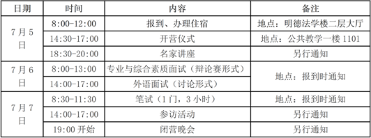 去年人大夏令营报名的截止时间是5月31日,在出章程之前我参考了前一年的报名要求,差别不太大。入营名单公布日比前一年迟了四天左右,在6月21日公布,具体活动时间见表。入营应当是120+,实到121人,优营人数72人,但最后录取在80+,基本上入营就可以录取。
