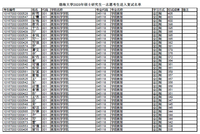 渤海大学考研辅导班:渤海大学2020年硕士研究生一志愿考生进入复试名单
