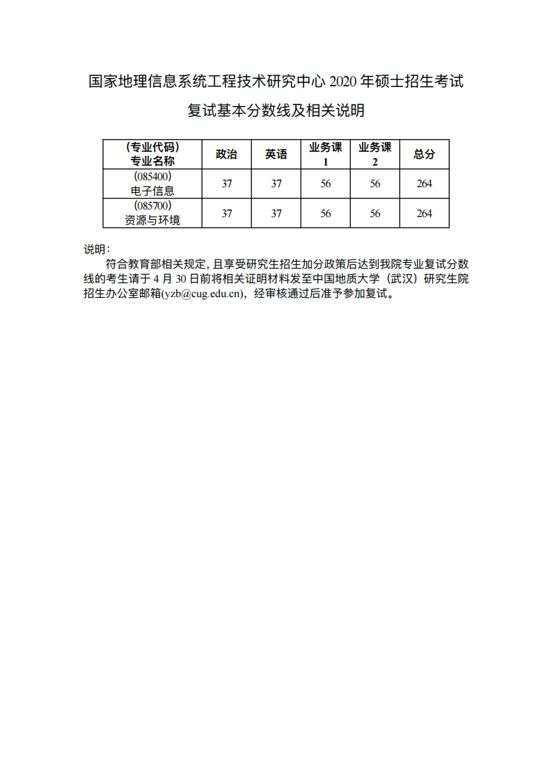 中国地质大学考研辅导班: 中国地质大学(武汉)国家地理信息系统工程技术研究中心2020年硕士招生考试复试分数线