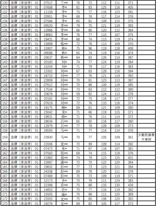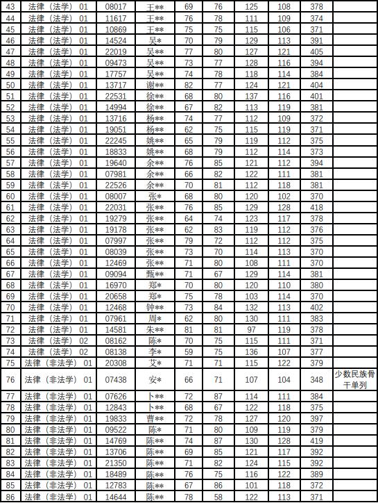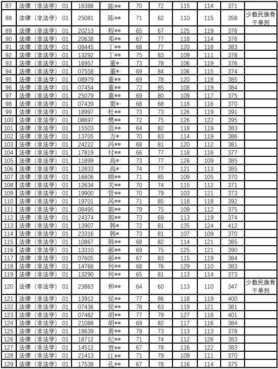 法律硕士(全日制和非全日制法学):外语55,政治55,专业一90,专业二90,总分370