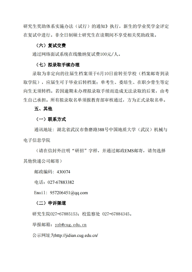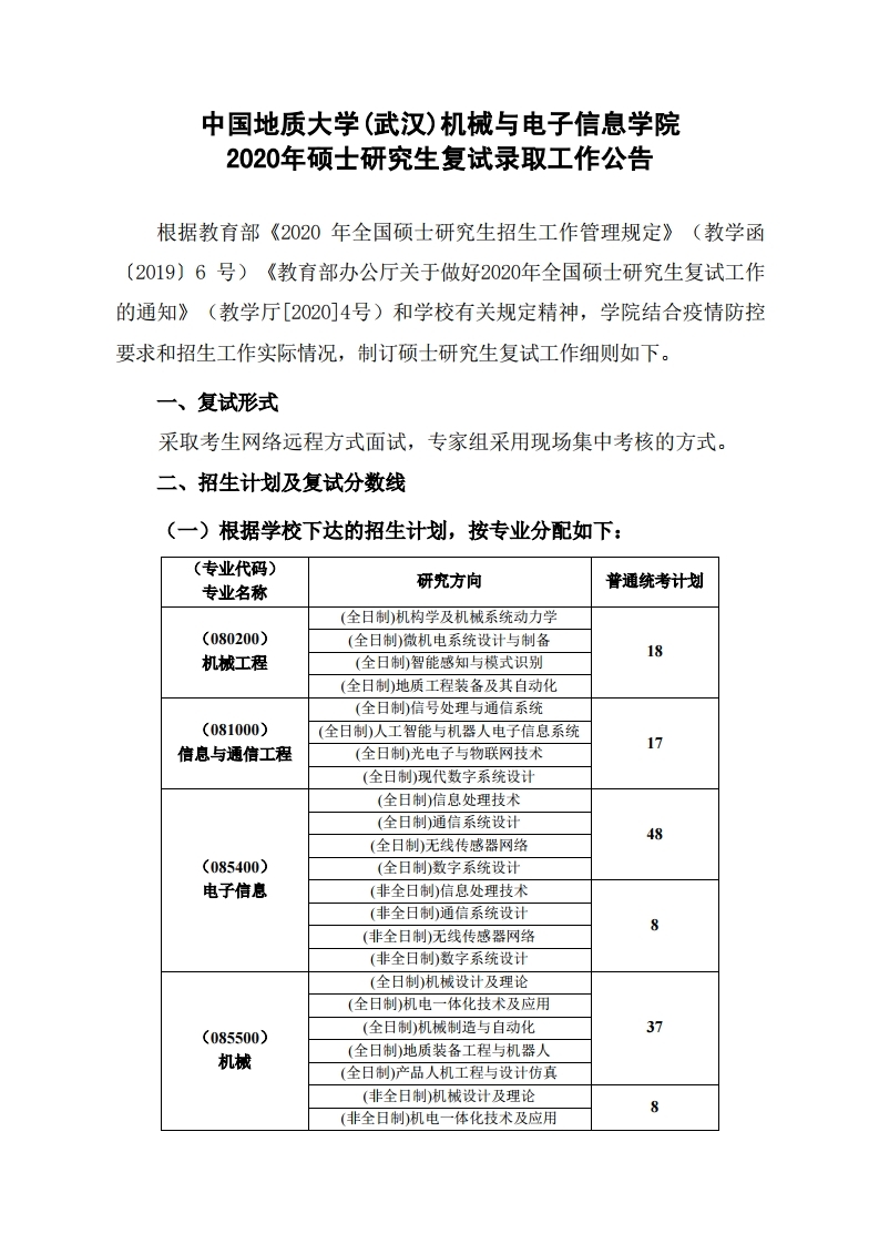 中国地质大学考研辅导班: 中国地质大学(武汉)机械与电子信息学院2020年硕士研究生复试录取工作公告
