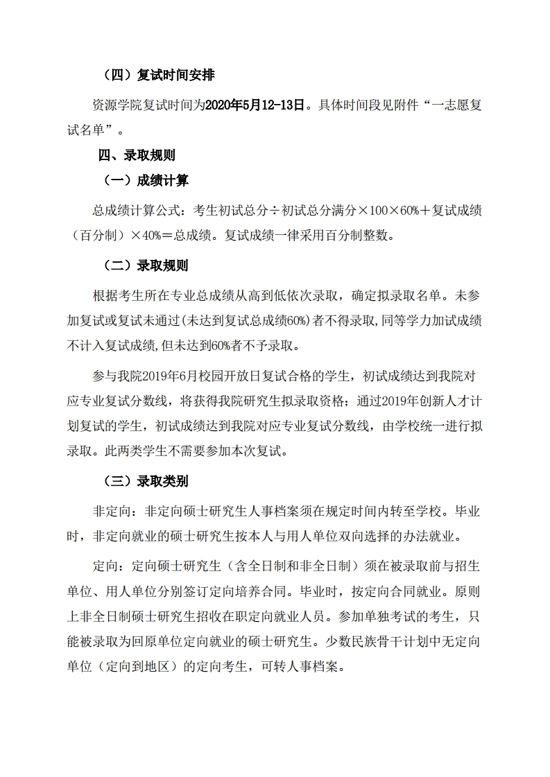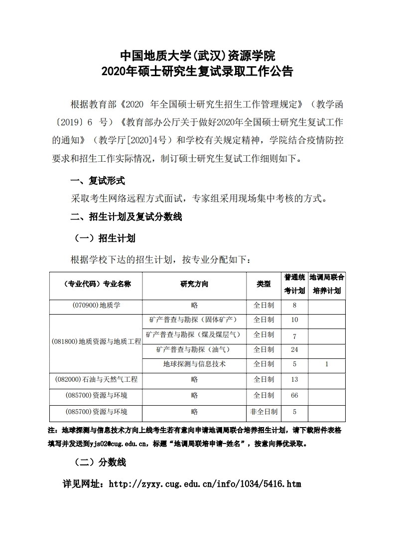 中国地质大学考研辅导班: 中国地质大学(武汉)资源学院2020年硕士研究生复试录取工作公告