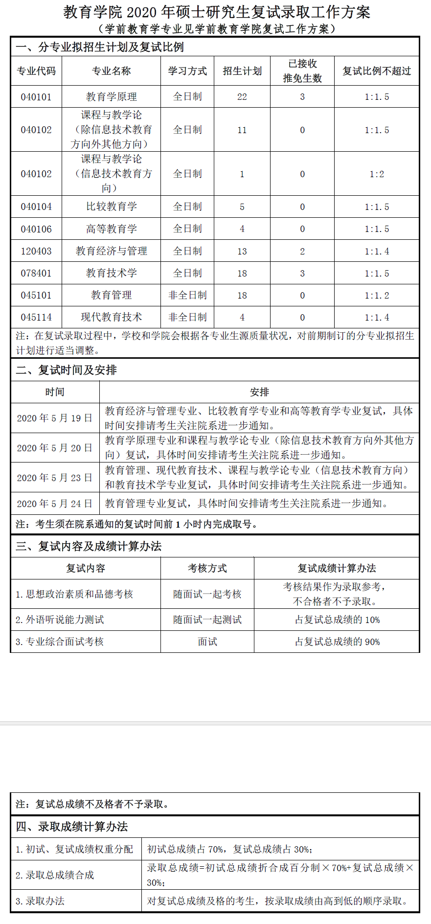首师大考研辅导班:2020年首都师范大学教育学院考研复试方案