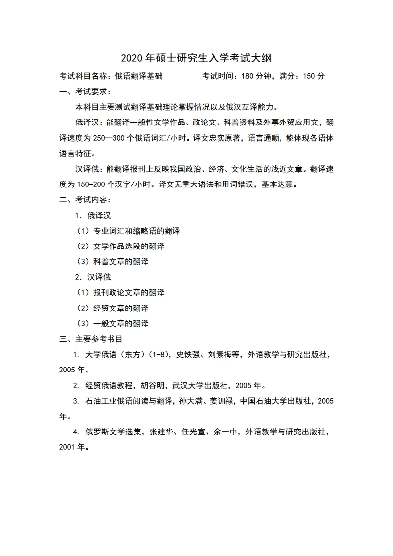 中国石油大学考研辅导班::中国石油大学(华东)358俄s语翻译基础2020年硕士研究生考试大纲、参考书目