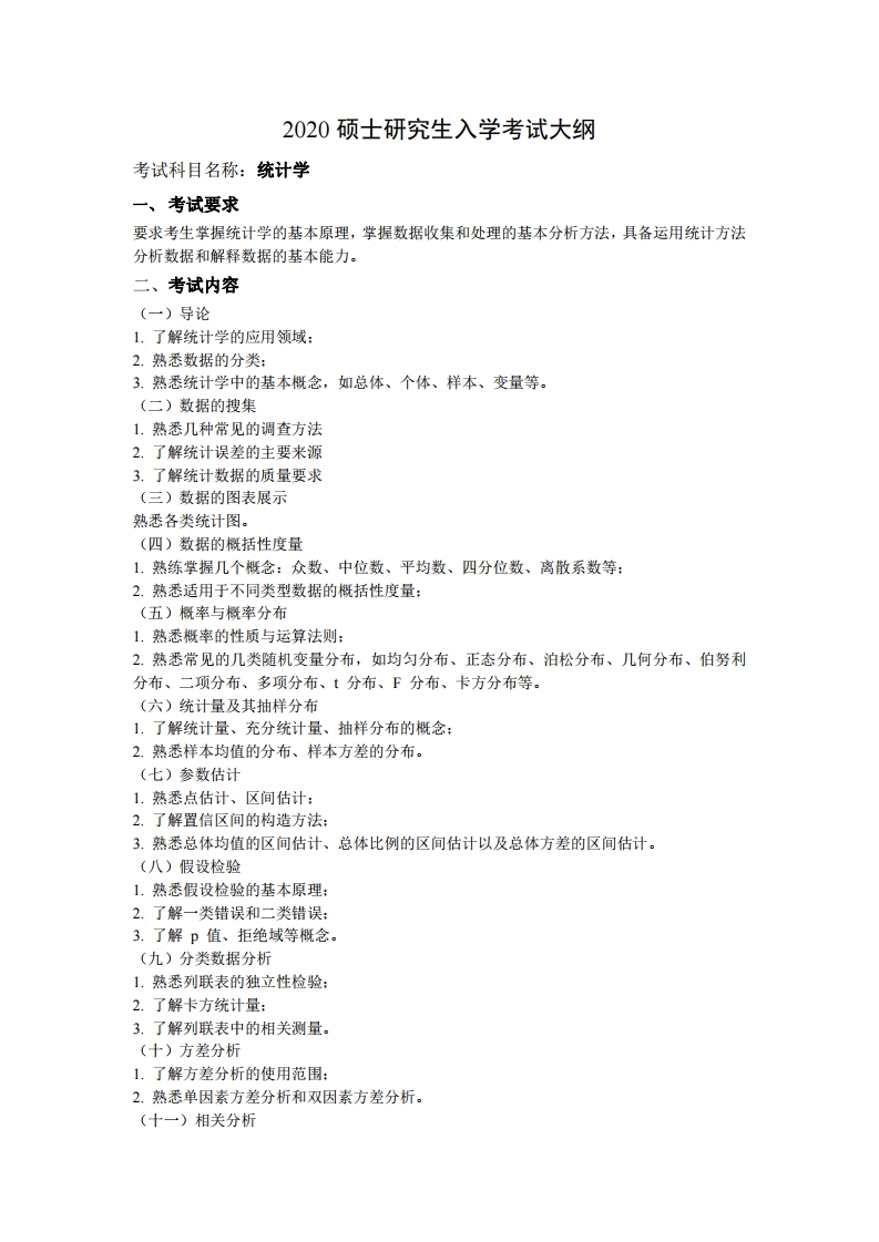中国石油大学考研辅导班:中国石油大学(华东)432统计学2020年硕士研究生考试大纲、参考书目