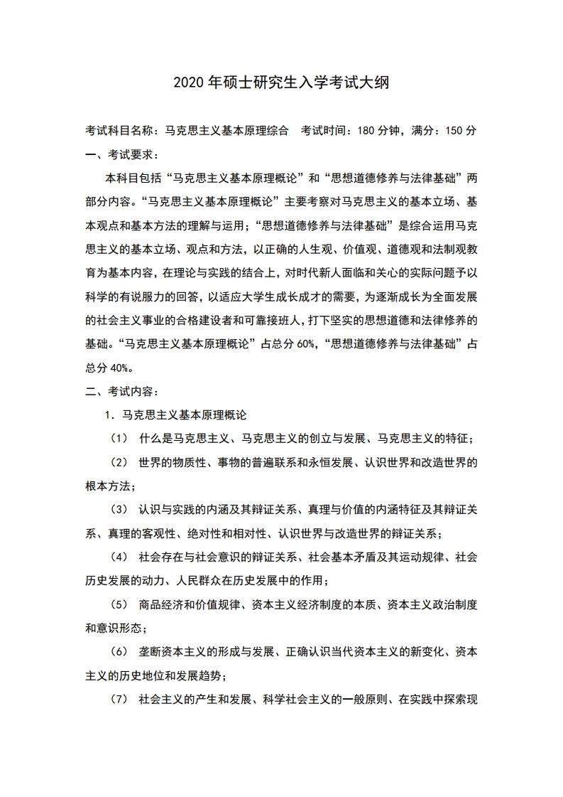 中国石油大学考研辅导班:中国石油大学(华东)718马克思主义基本原理概论2020年硕士研究生考试大纲、参考书目