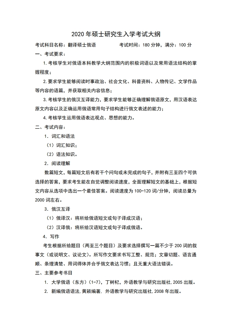中国石油大学考研辅导班:中国地质大学(北京)翻译硕士俄语2020年硕士研究生考试大纲