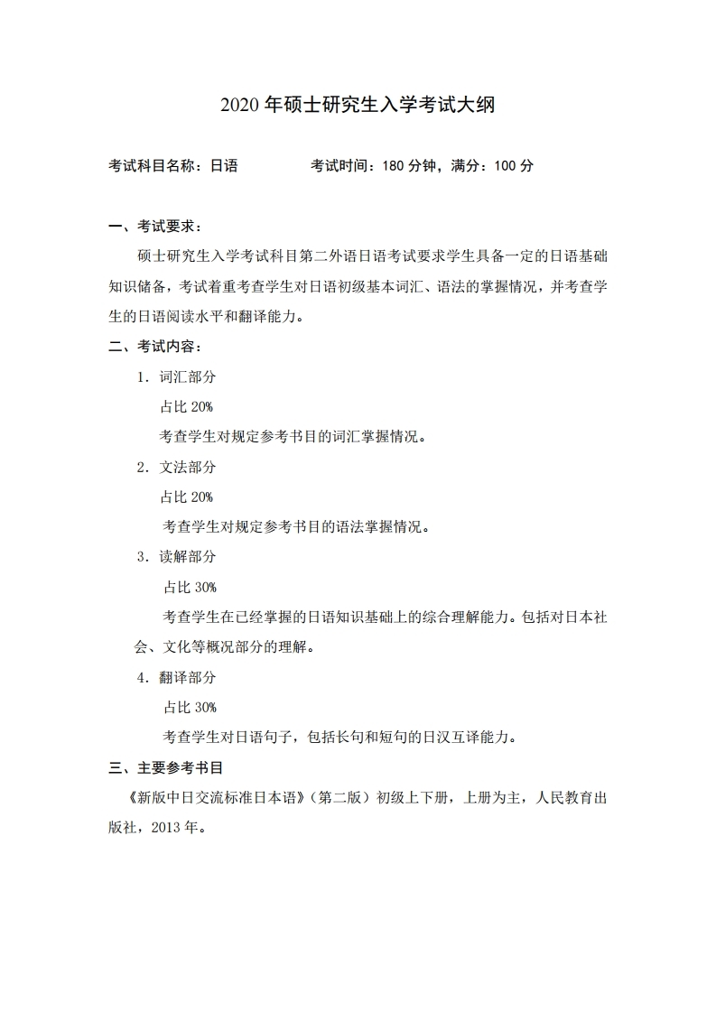 中国石油大学考研辅导班:中国地质大学(北京)日语2020年硕士研究生考试大纲、参考书目