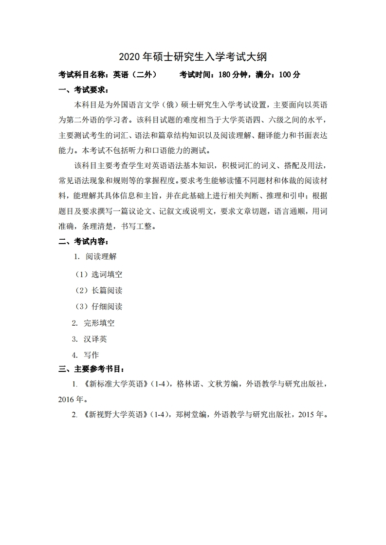 中国石油大学考研辅导班:中国石油大学(华东)英语(二外)2020年硕士研究生考试大纲、参考书目