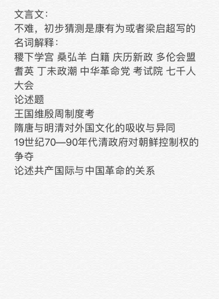 北京大学考研辅导班:2018年北京大学历史专业考研真题(回忆版)