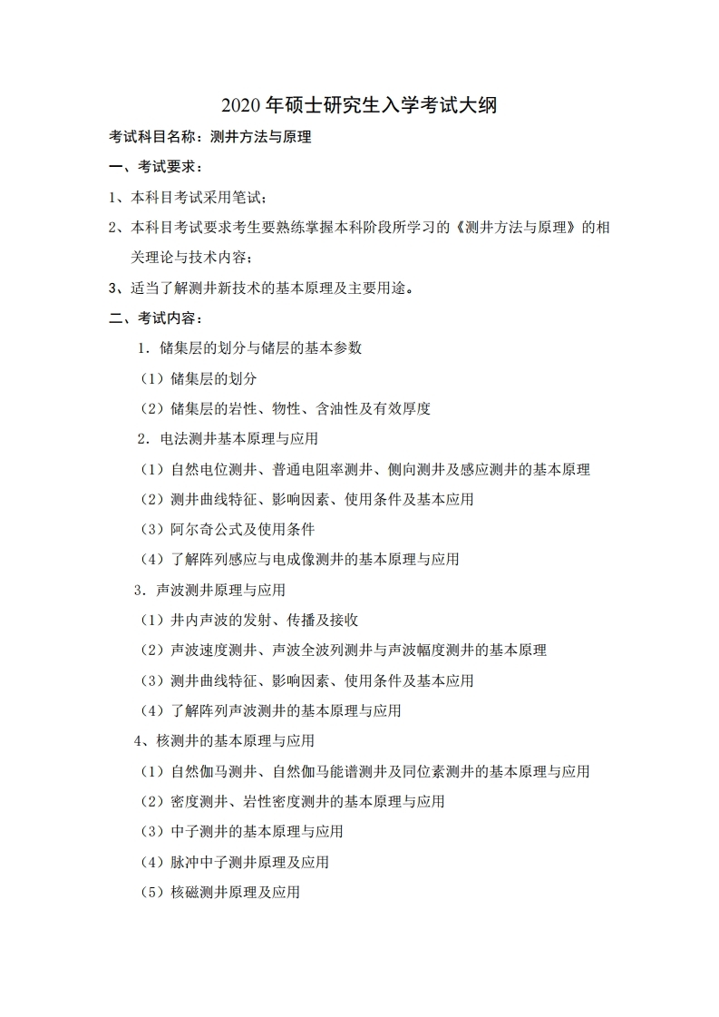 中国石油大学考研辅导班:中国石油大学(华东)测井方法与原理2020年硕士研究生考试大纲、参考书目