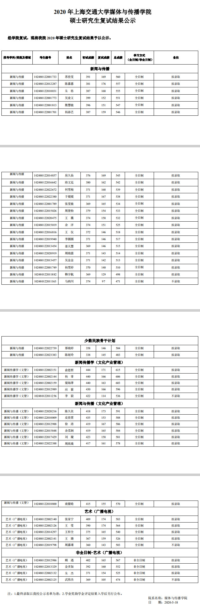 上海交通大学考研辅导班:2020上海交通大学媒体与传播学院硕士研究生复试结果公示