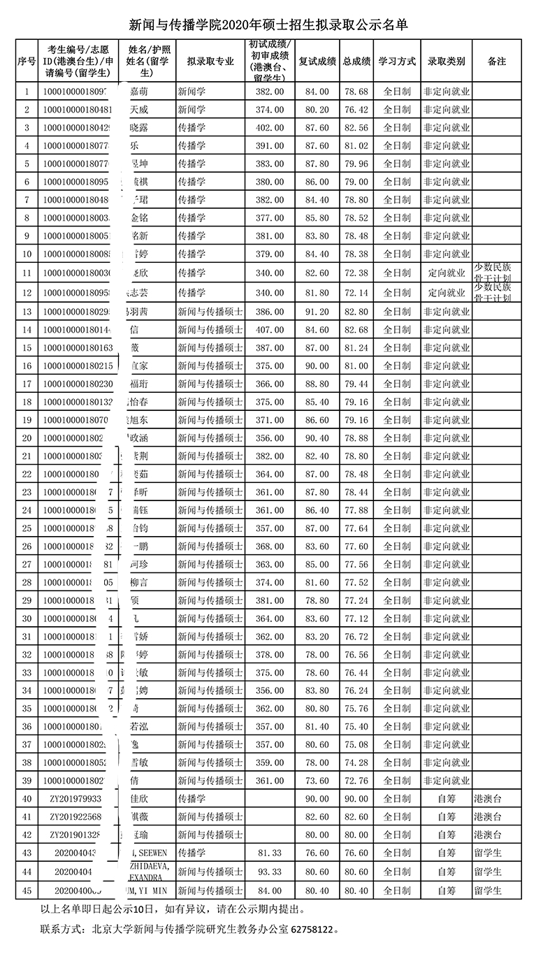 北大考研辅导班:2020年北京大学新闻与传播学院考研复试拟录取名单公示