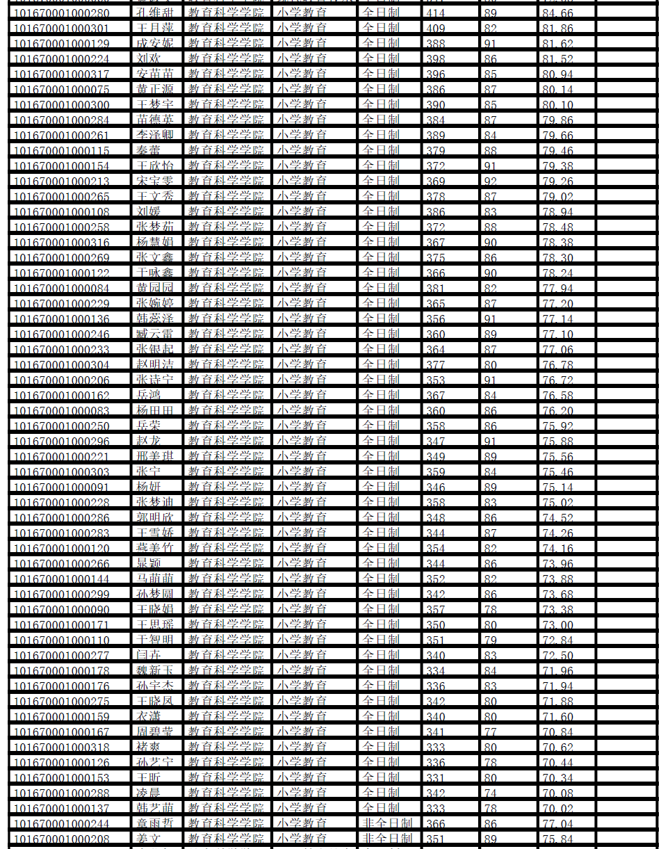 渤海大学2020年小学教育硕士研究生招生一志愿考生拟录取名单