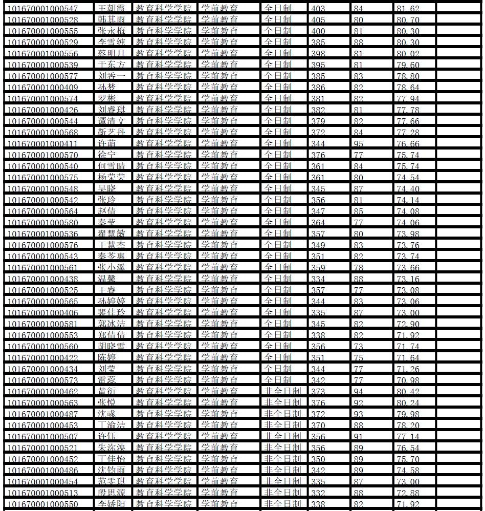 渤海大学2020年学前教育硕士研究生招生一志愿考生拟录取名单