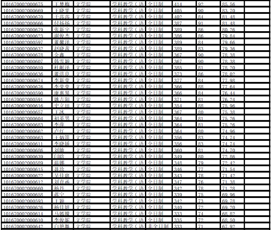 渤海大学2020年学科教学(语文)硕士研究生招生一志愿考生拟录取名单
