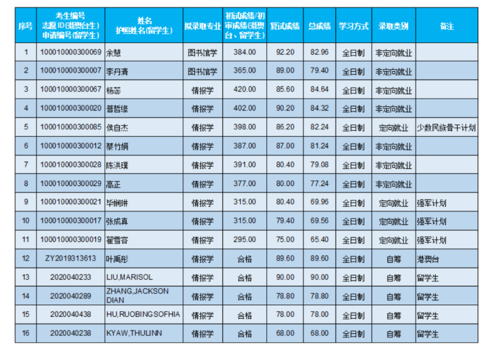 北京大学考研辅导班:2020年北京大学信息管理系考研拟录取名单公布