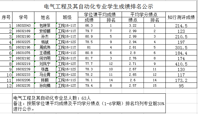 渤海大学考研辅导班:渤海大学2020年推荐优秀应届本科毕业生免试攻读研究生电气工程及其自动化专业学生成绩排名公示