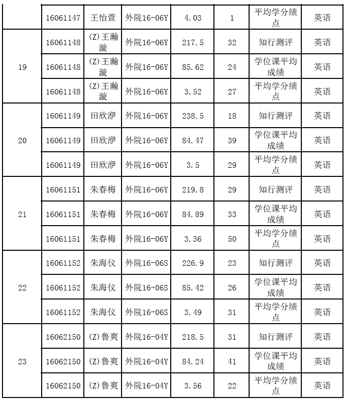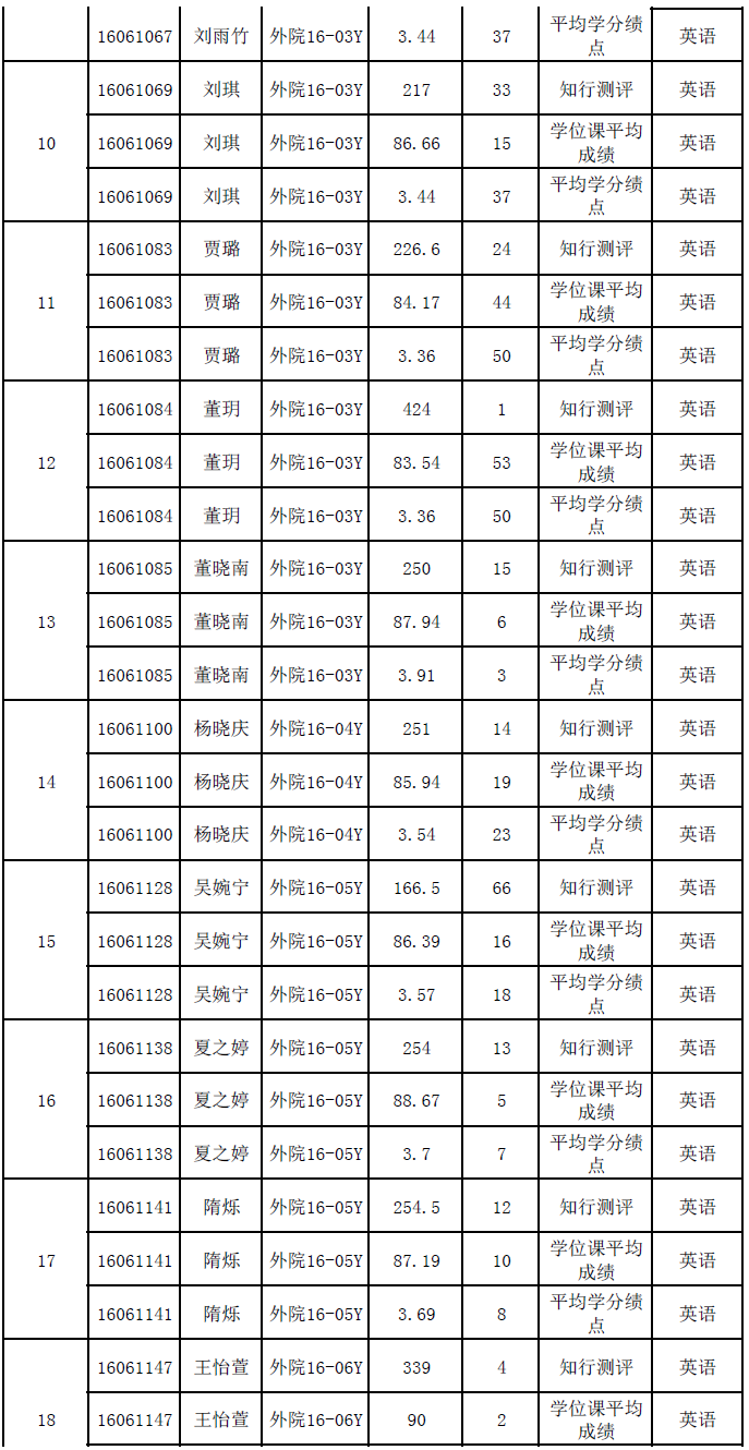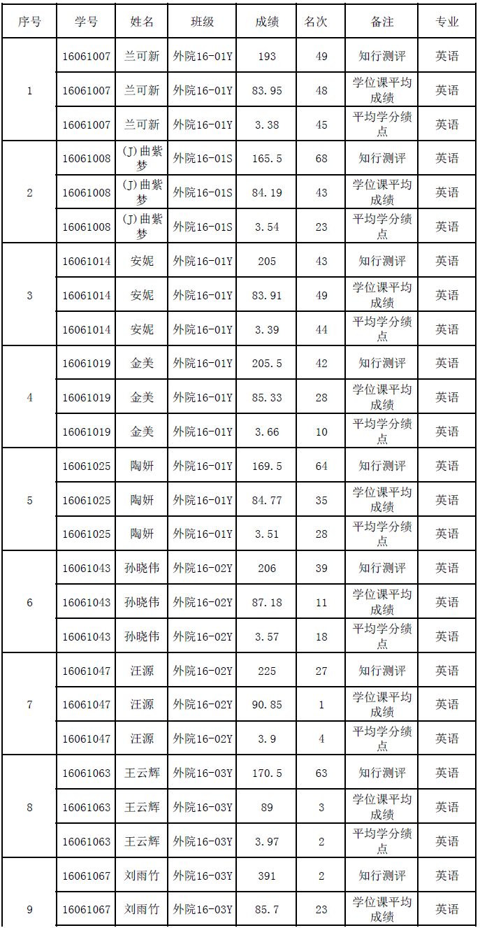 渤海大学考研辅导班:渤海大学外国语学院英语系2020年符合研究生推免条件的学生名单公示(按学号排序)