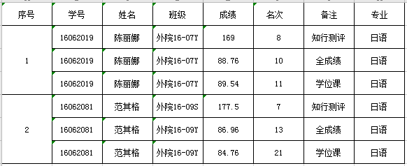 渤海大学考研辅导班:外国语学院日语专业2020年符合研究生推免条件的学生名单公示(按学号排序)