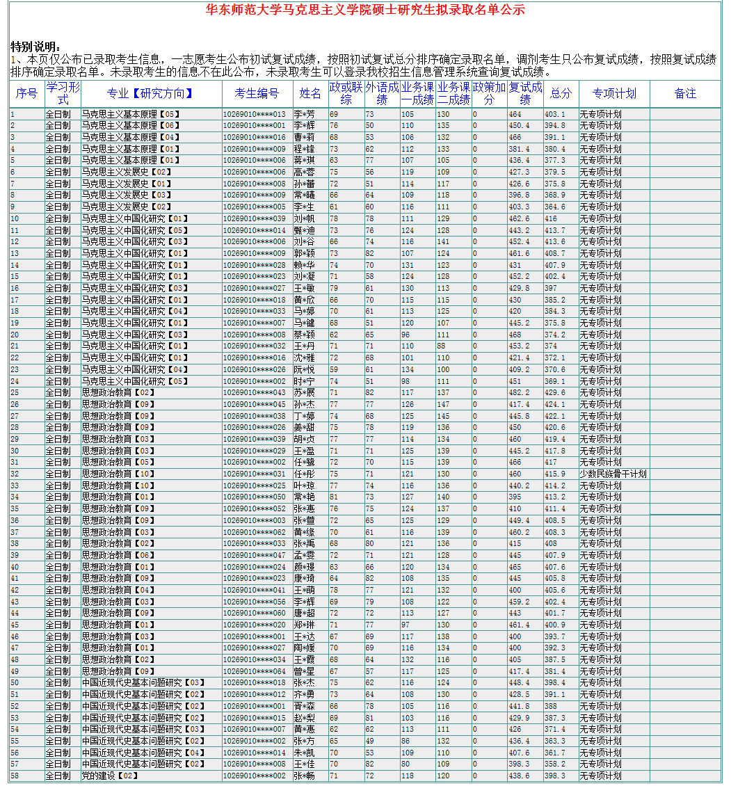 华东师大考研辅导班:2020年华东师范大学马克思主义学院硕士研究生考研拟录取名单公示