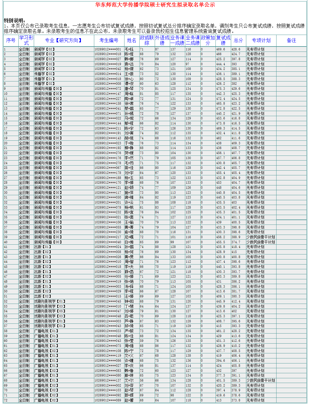 华师大考研辅导班:2020年华东师范大学传播学院硕士研究生拟录取名单公示