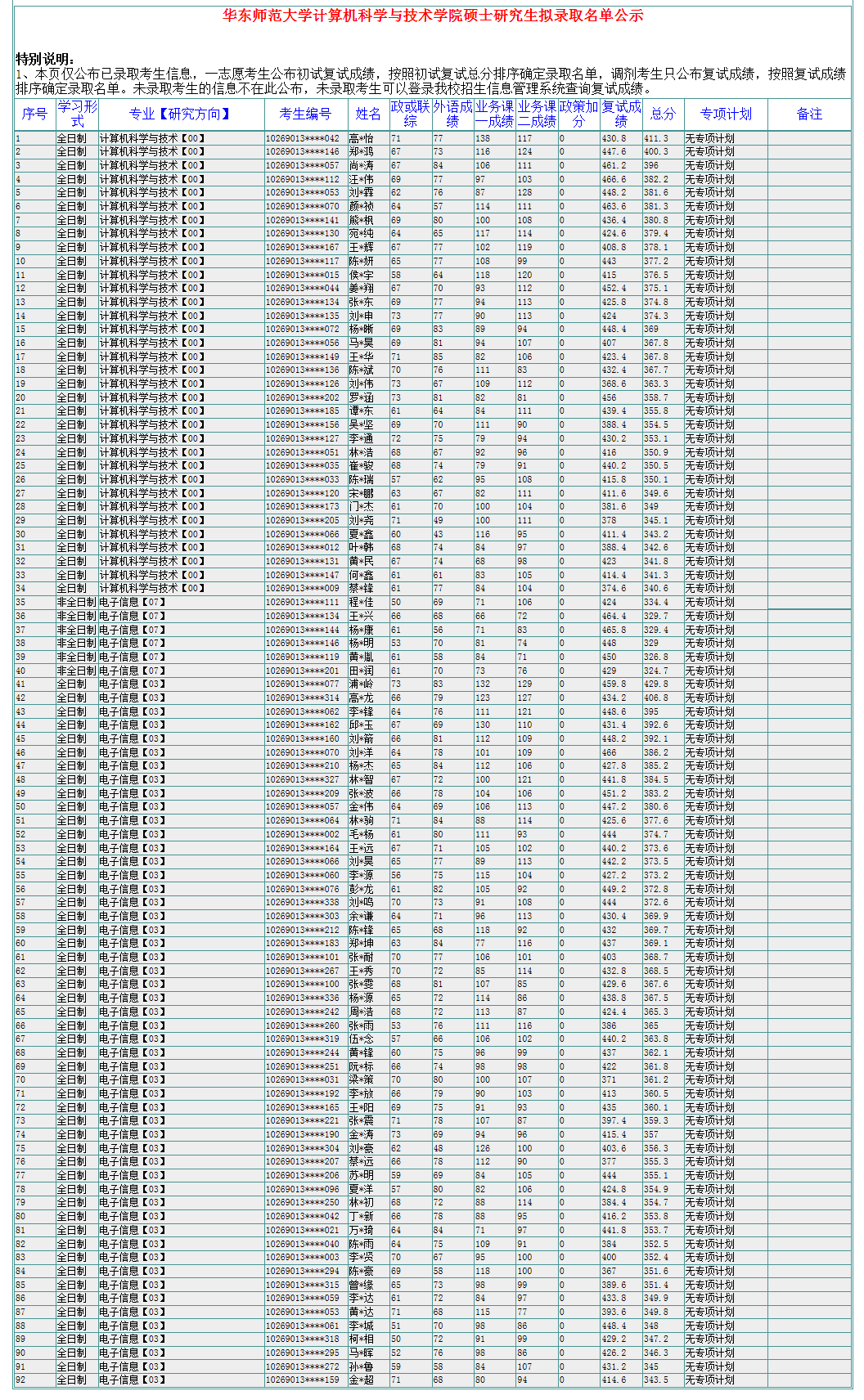 华师大考研辅导班:2020年华东师范大学计算机科学与技术学院硕士研究生拟录取名单公示