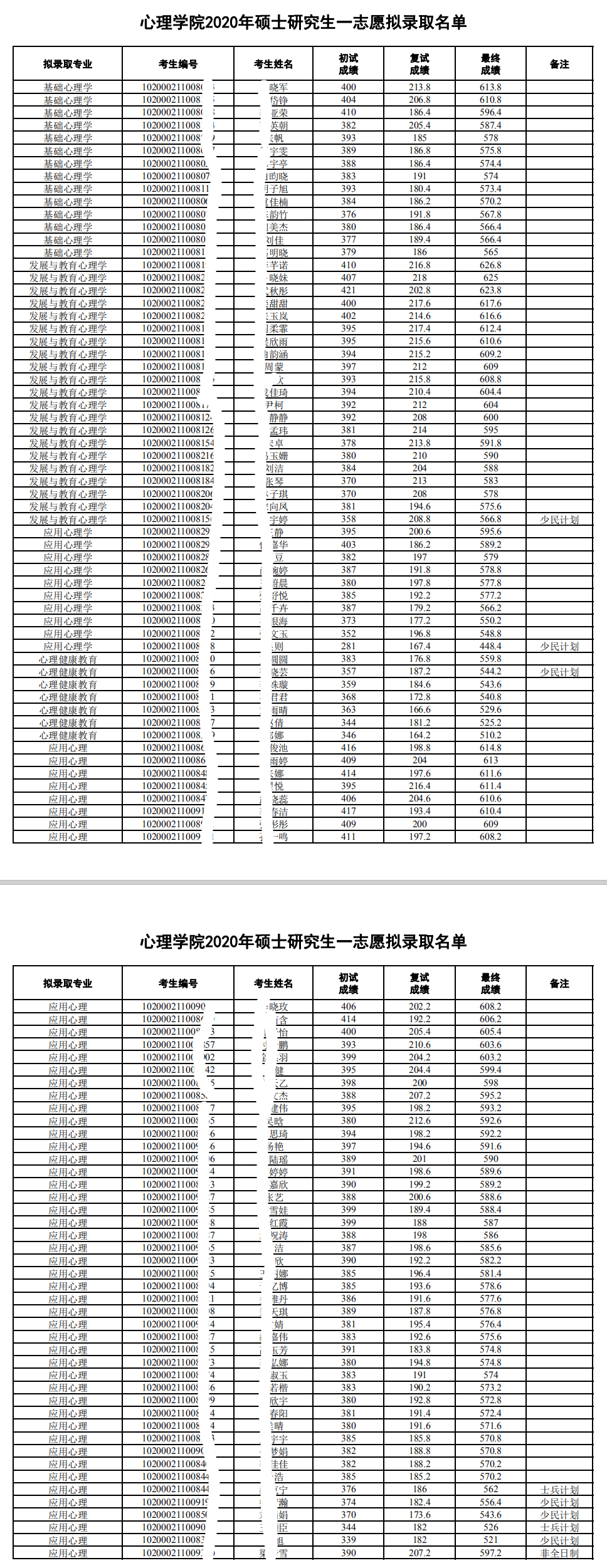 东师大考研辅导班:2020年东北师范大学心理学院硕士研究生录取名单公示
