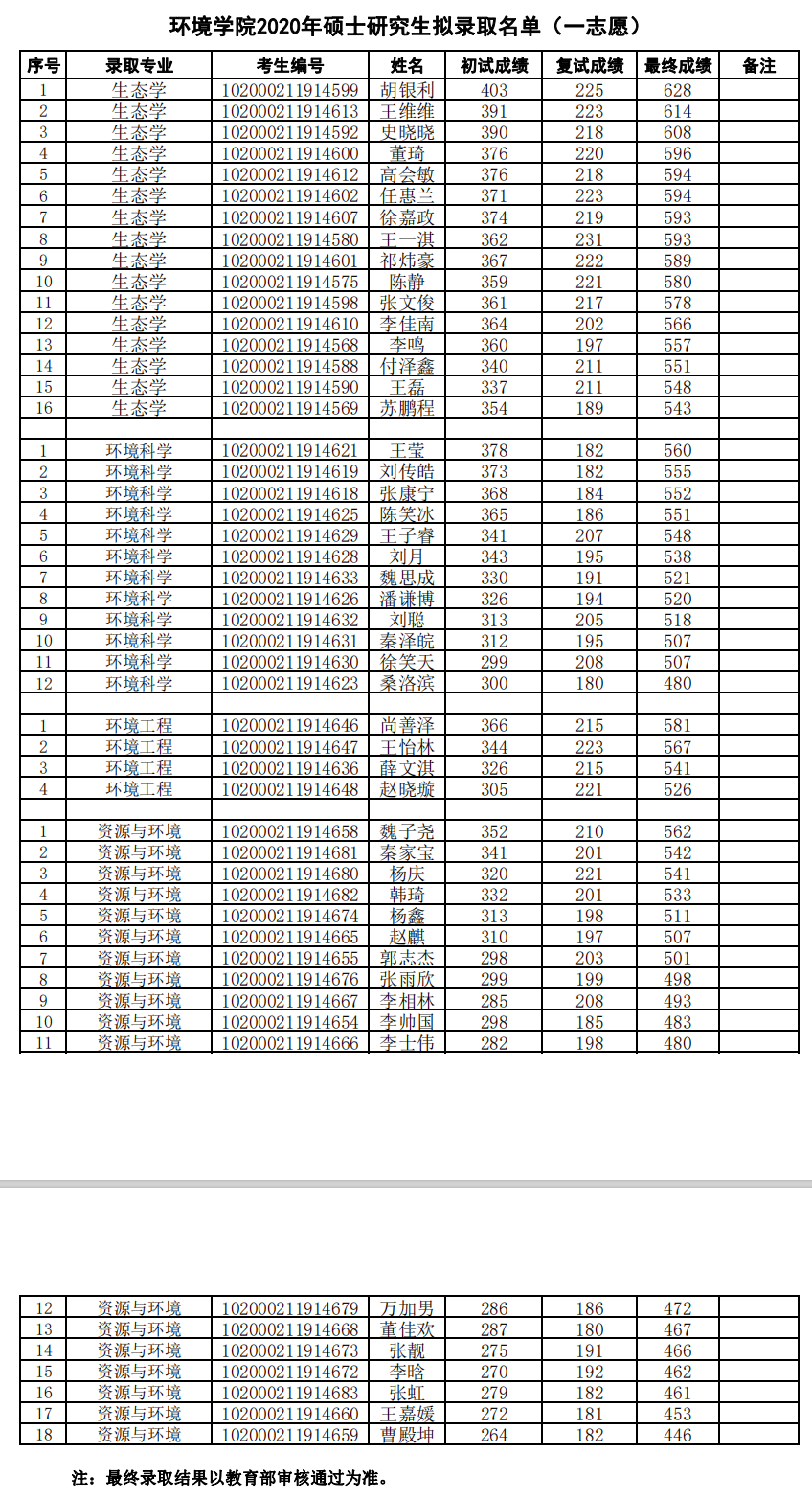 东师大考研辅导班:2020年东北师范大学环境学院硕士研究生录取名单公示
