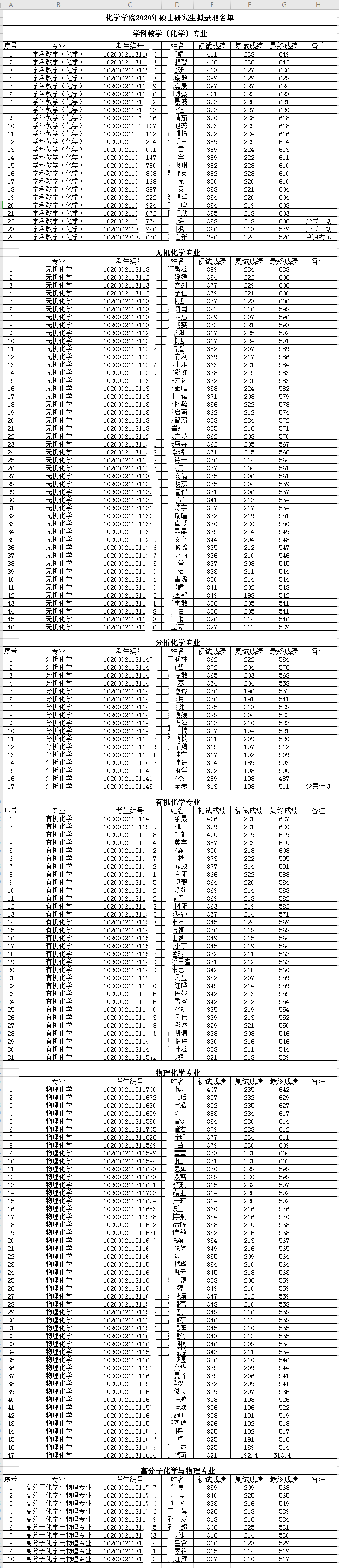 东师大考研辅导班:2020年东北师范大学化学学院硕士研究生录取名单公示