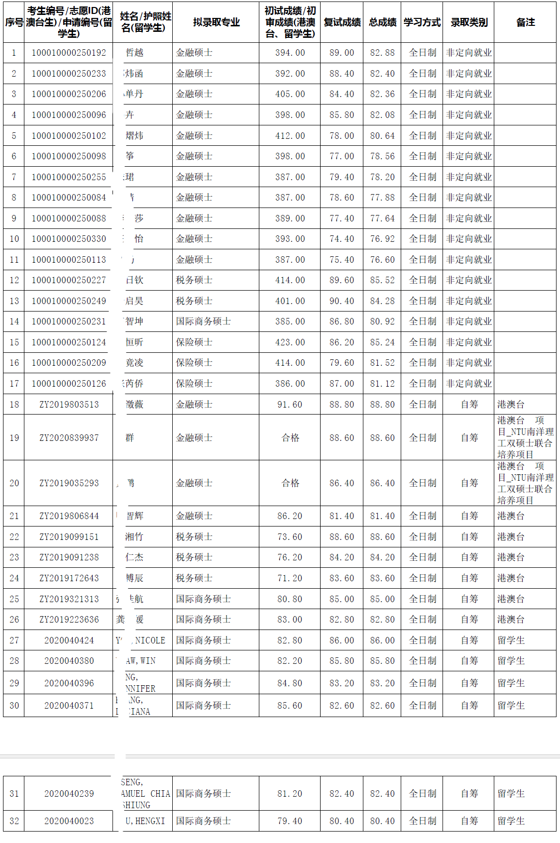北大考研辅导班:2020年北大光华管理学院硕士招生考研复试拟录取公示名单